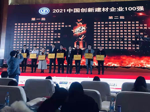 2020年11月6日,公司董事長臧明光先生受邀赴合肥參加中國建筑材料企業(yè)管理協(xié)會舉辦的中國建材企業(yè)發(fā)展論壇,暨中國建材企業(yè)500強系列活動發(fā)布會。我公司被評選為''2020中國建材服務業(yè)100強''之一。感謝協(xié)會對我們的支持和青睞,我公司會繼續(xù)努力,創(chuàng)造更好的成績。